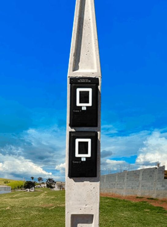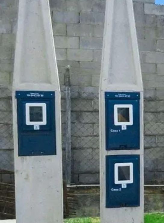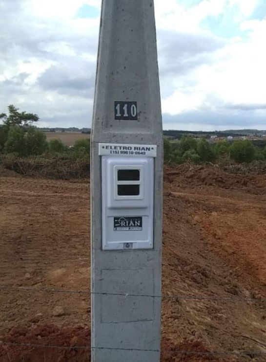 - Postes galvanizados ou de concreto com caixa de medição padrão